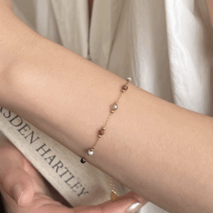 This elegant bracelet features polished natural stones in warm copper tones, spaced with golden accents on a delicate chain. Blending casual elegance with everyday charm, it’s the perfect piece to uplift your mood and style.
